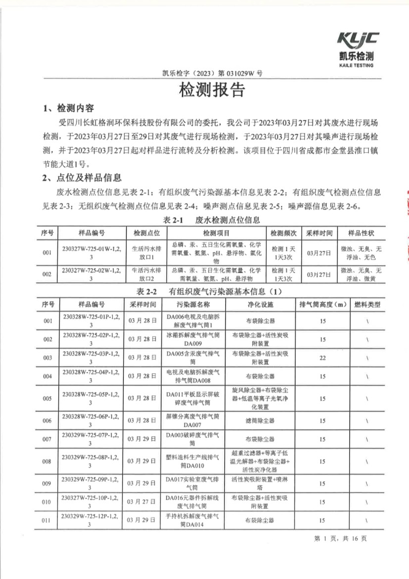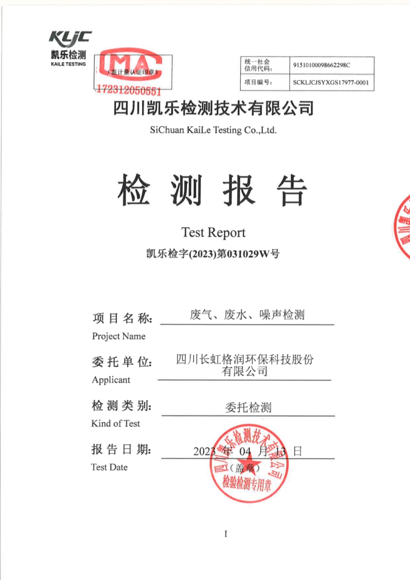 2023第031029W號(hào)-四川長(zhǎng)虹格潤(rùn)環(huán)保科技股份有限公司廢氣、廢水、噪聲檢測(cè)報(bào)告