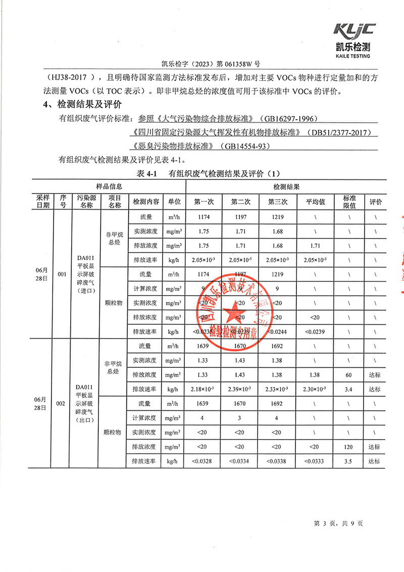 2023第061358W號四川長虹格潤環(huán)保科技股份有限公司(廢氣檢測)報告