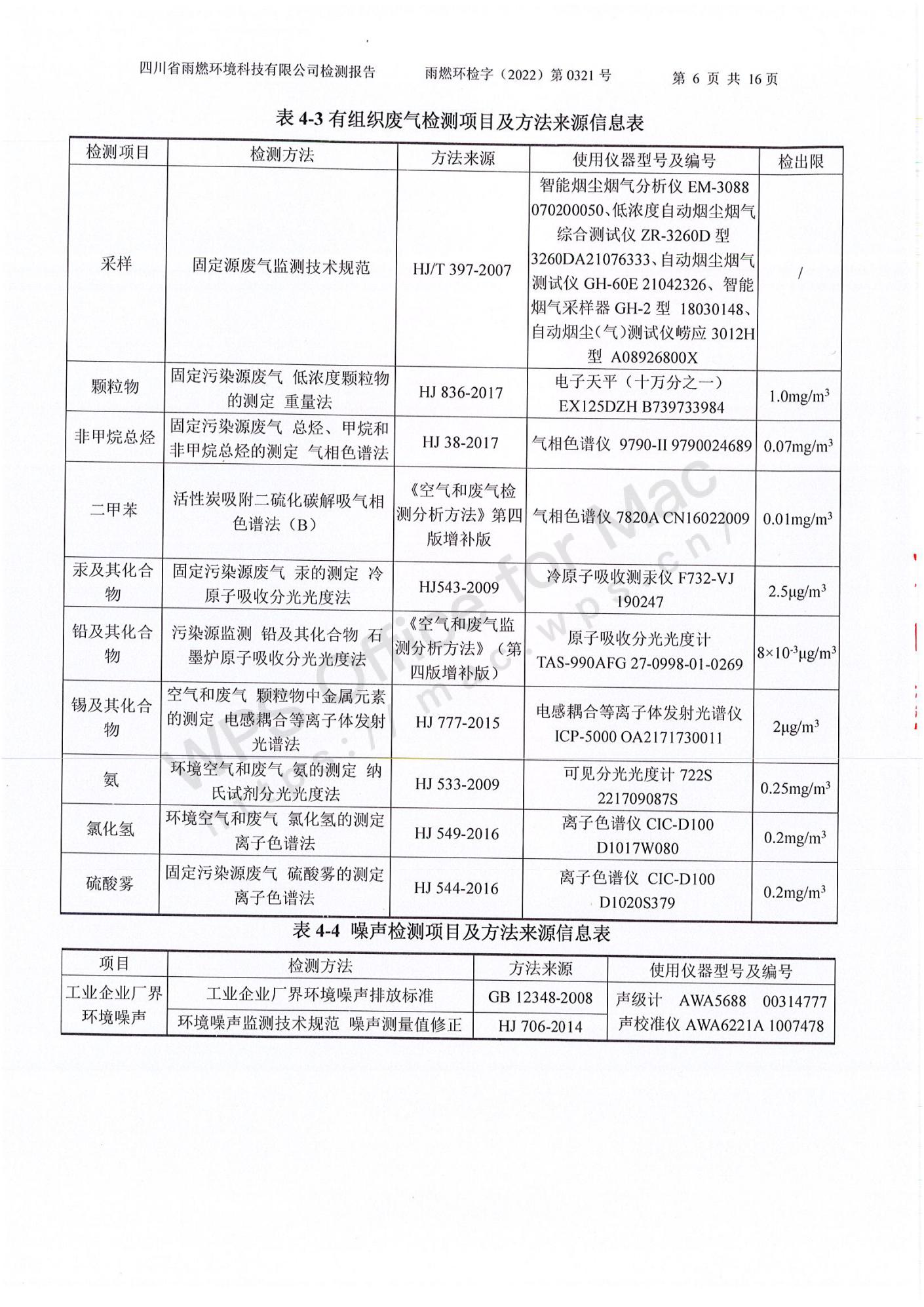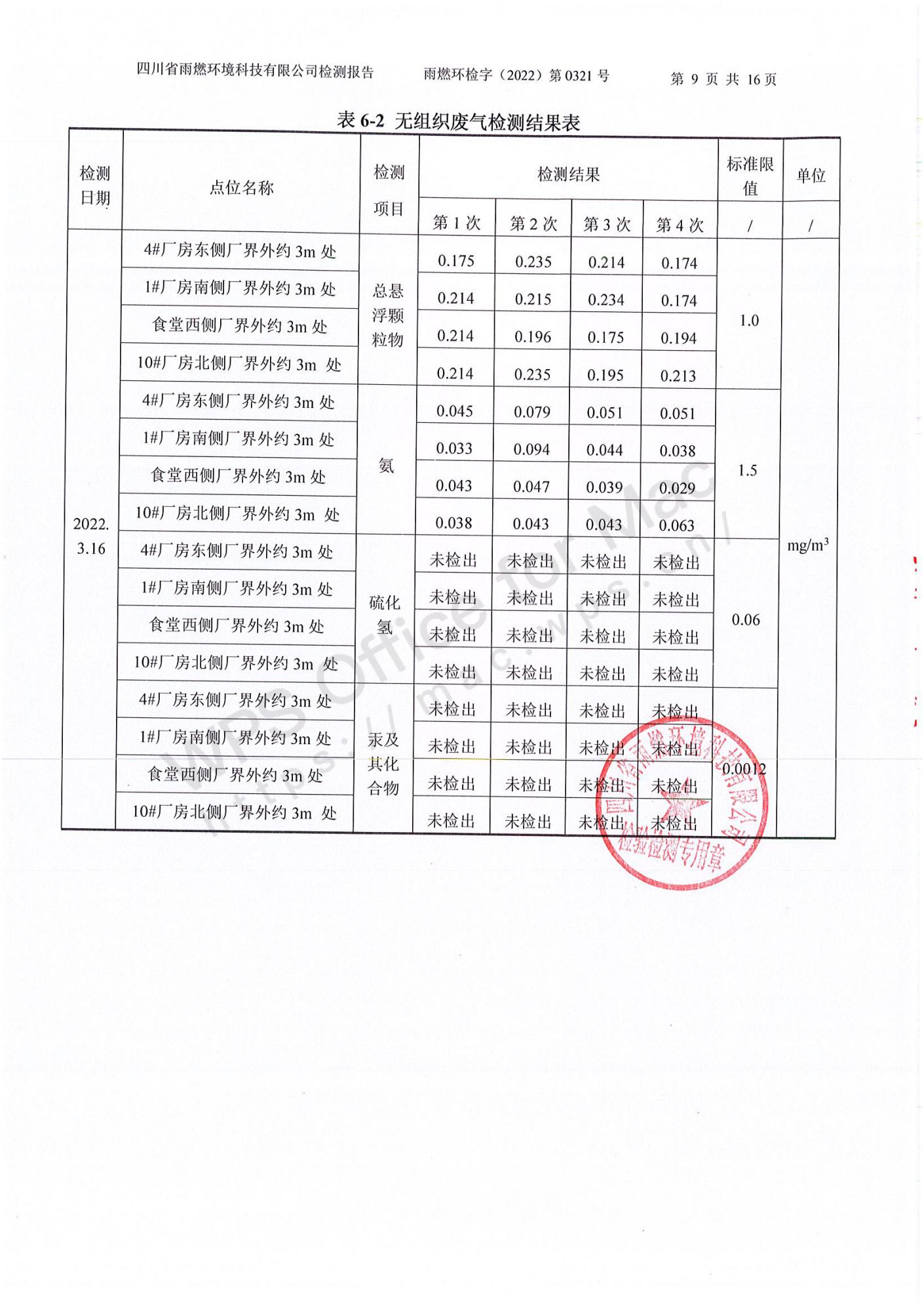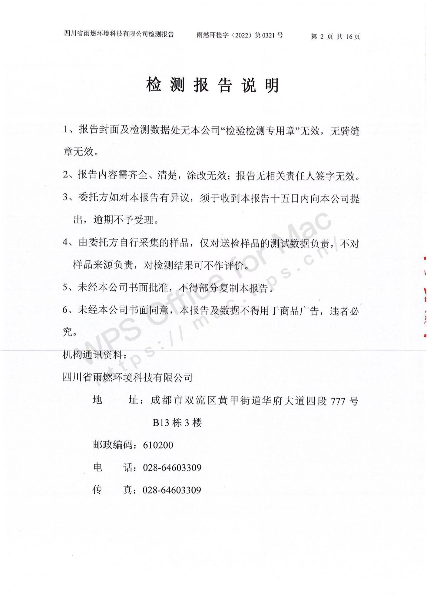 雨燃環(huán)檢字(2022)第0321號四川長虹格潤環(huán)保科技股份有限公司2022第一季度廢水、廢氣、噪聲檢測