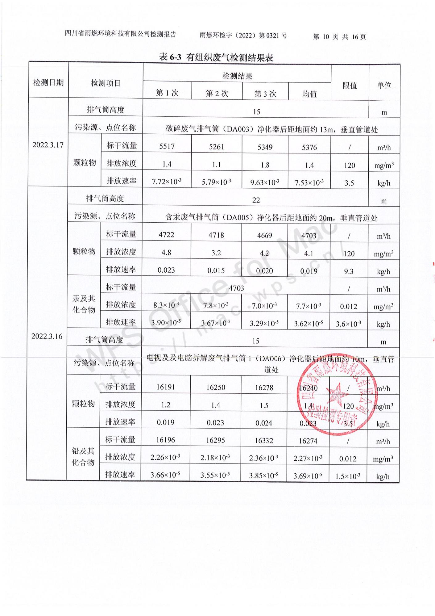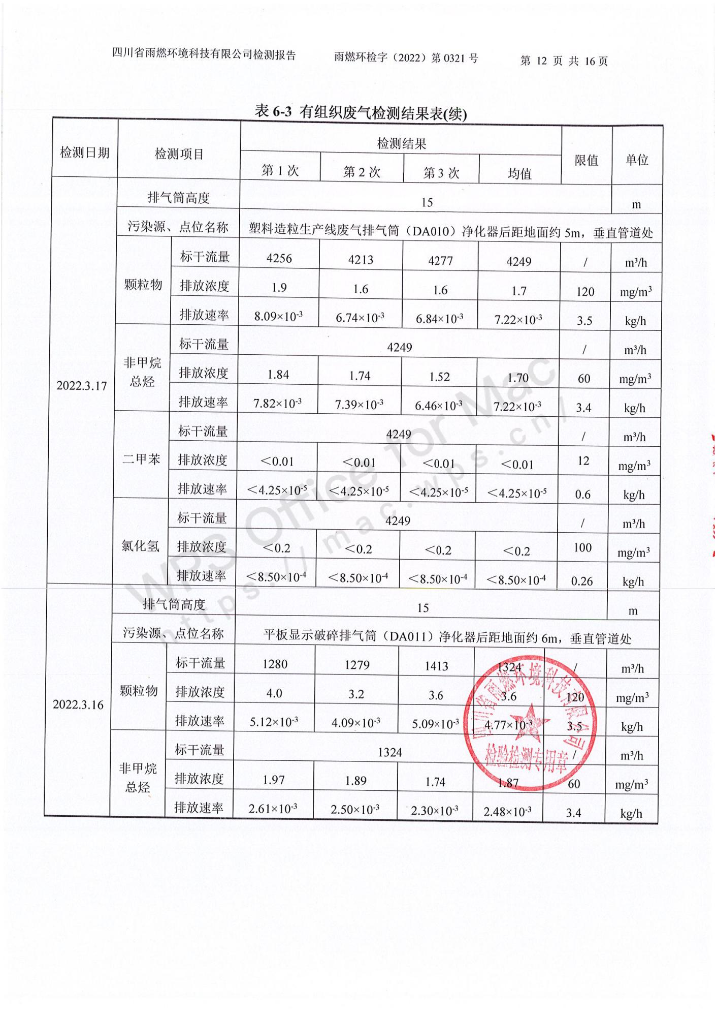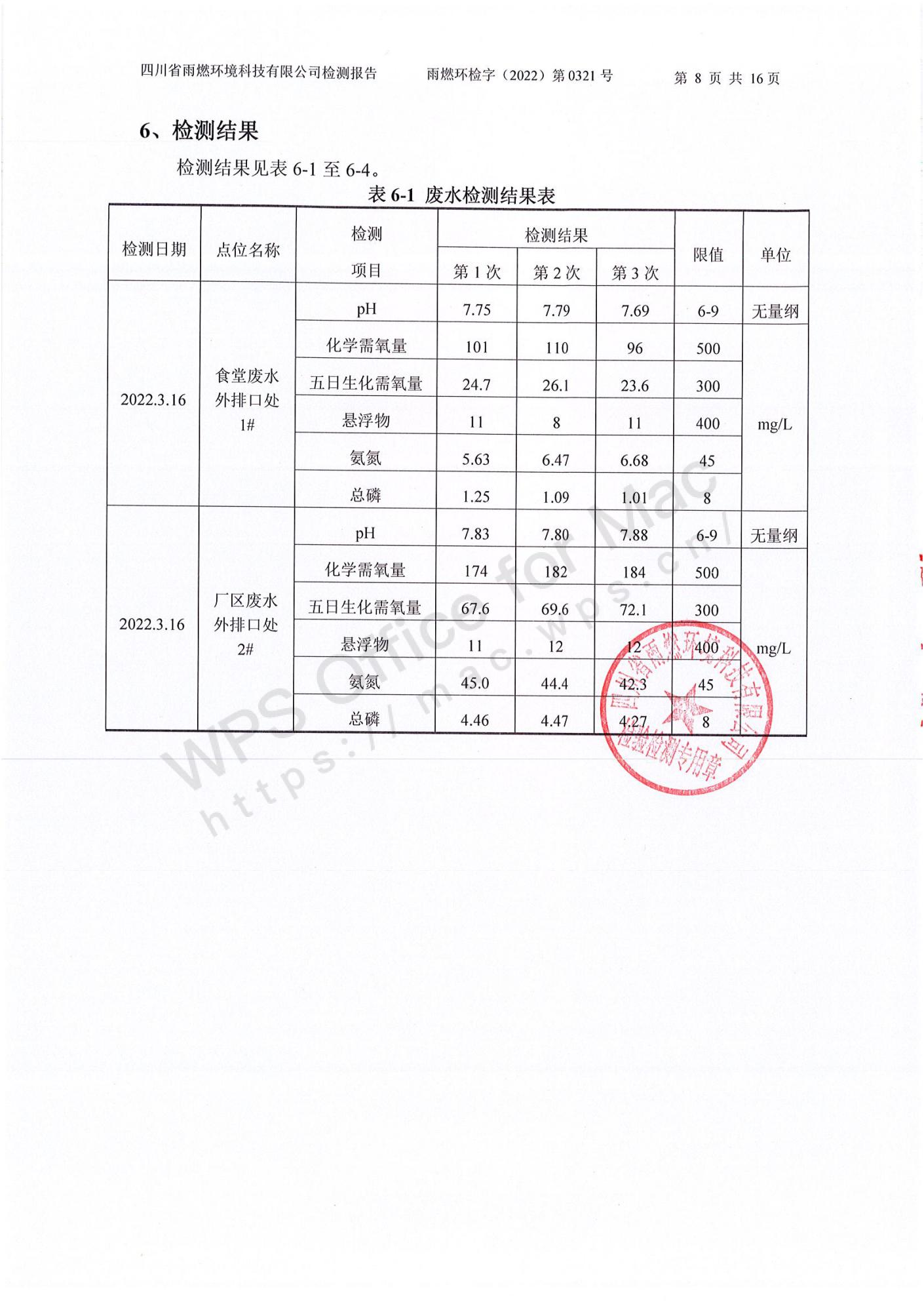雨燃環(huán)檢字(2022)第0321號四川長虹格潤環(huán)保科技股份有限公司2022第一季度廢水、廢氣、噪聲檢測