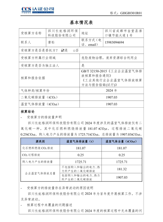四川長虹格潤環(huán)??萍脊煞萦邢薰?024年度溫室氣體排放核算報告
