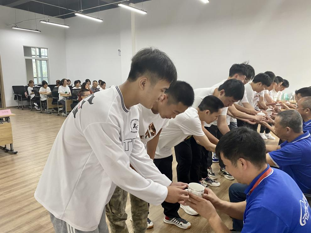 最后,在拜師儀式上,24名訂單班的學(xué)員們與12位師傅進行了師徒結(jié)對。徒弟們雙手恭敬地為自己的師傅敬上一杯拜師茶,師傅也向徒弟贈送精心準(zhǔn)備的禮物,鼓勵他們勤學(xué)實干。