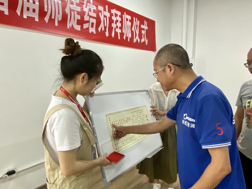 師傅與學(xué)員們依次按下手印,簽下“拜師貼”,自此,公司首批師徒傳幫帶成功結(jié)對、首個訂單培養(yǎng)班正式起航。相信學(xué)員們通過公司搭建的平臺、師傅的悉心教誨加上自身的努力拼搏,一定會成為公司未來發(fā)展的棟梁之才!
