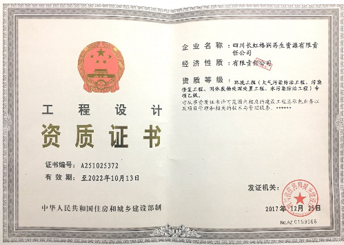 Environmental protection engineering professional contractor level 2, environmental engineering special design level B, Sichuan pollution control project level A