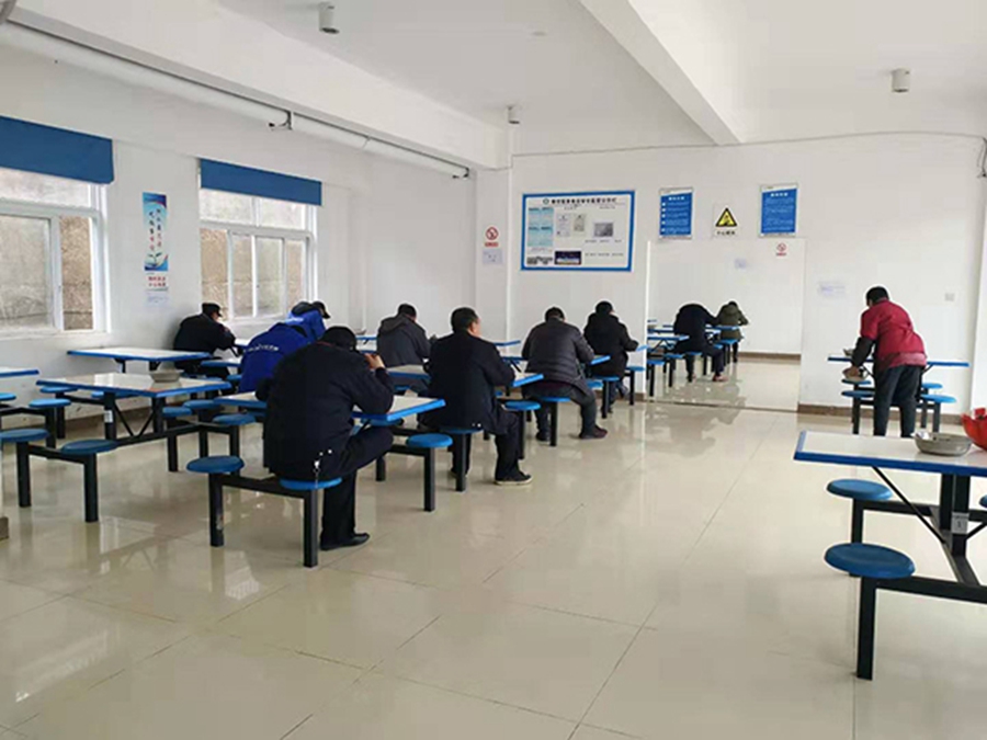 Employees must strictly abide by the dining arrangements during the epidemic prevention and control of the unit, queue up before meals, sit at the same table after taking the meal, avoid multiple people dining together, avoid face-to-face dining, and talking is strictly prohibited.