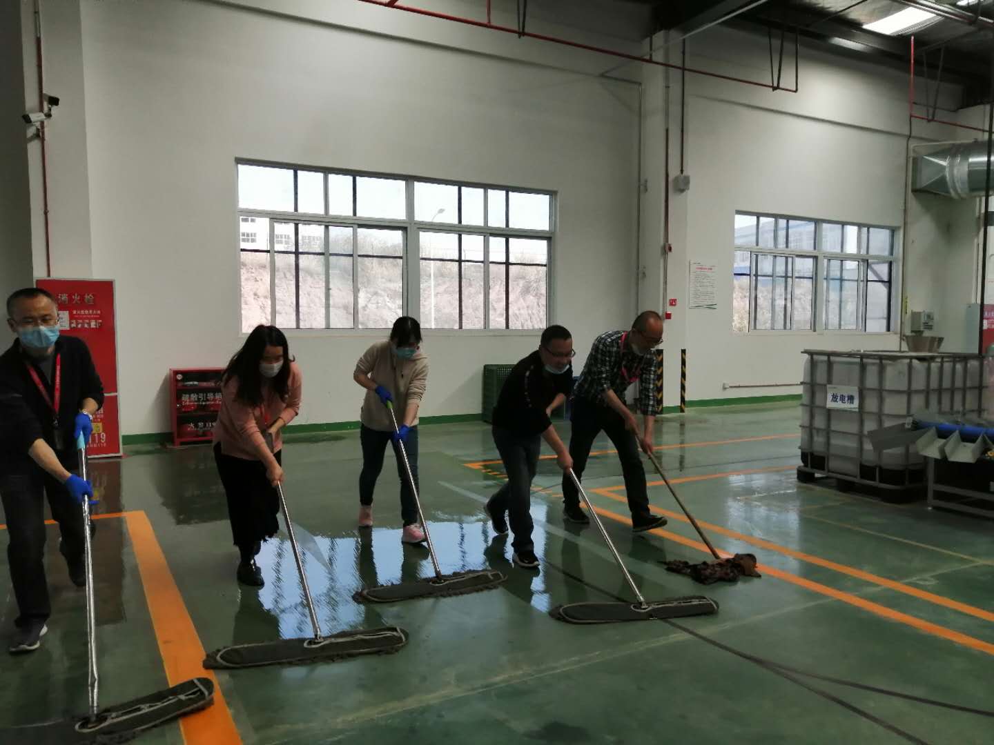 At 1 o'clock in the afternoon, the cleaning of Changhong Gerun's "Patriotic Health Campaign" officially began. In the offices and production plants, more than 100 employees wiped the doors and windows, cleaned the fallen leaves, cleaned the office, cleaned the floor of the plant, and jumped into the deep alleys to remove the dirt.