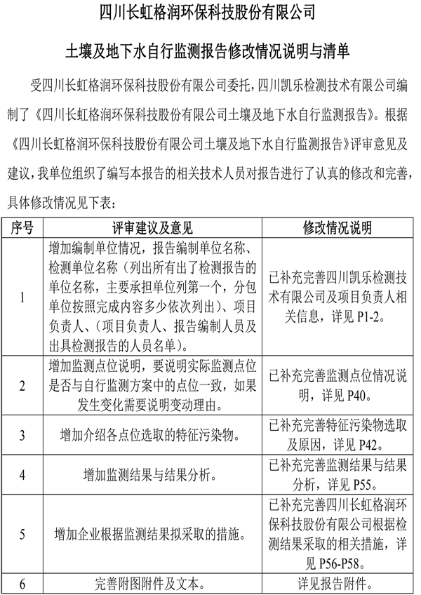 Sichuan Changhong Gerun Environmental Protection Technology Co., Ltd.-Self-monitoring report of soil and groundwater
