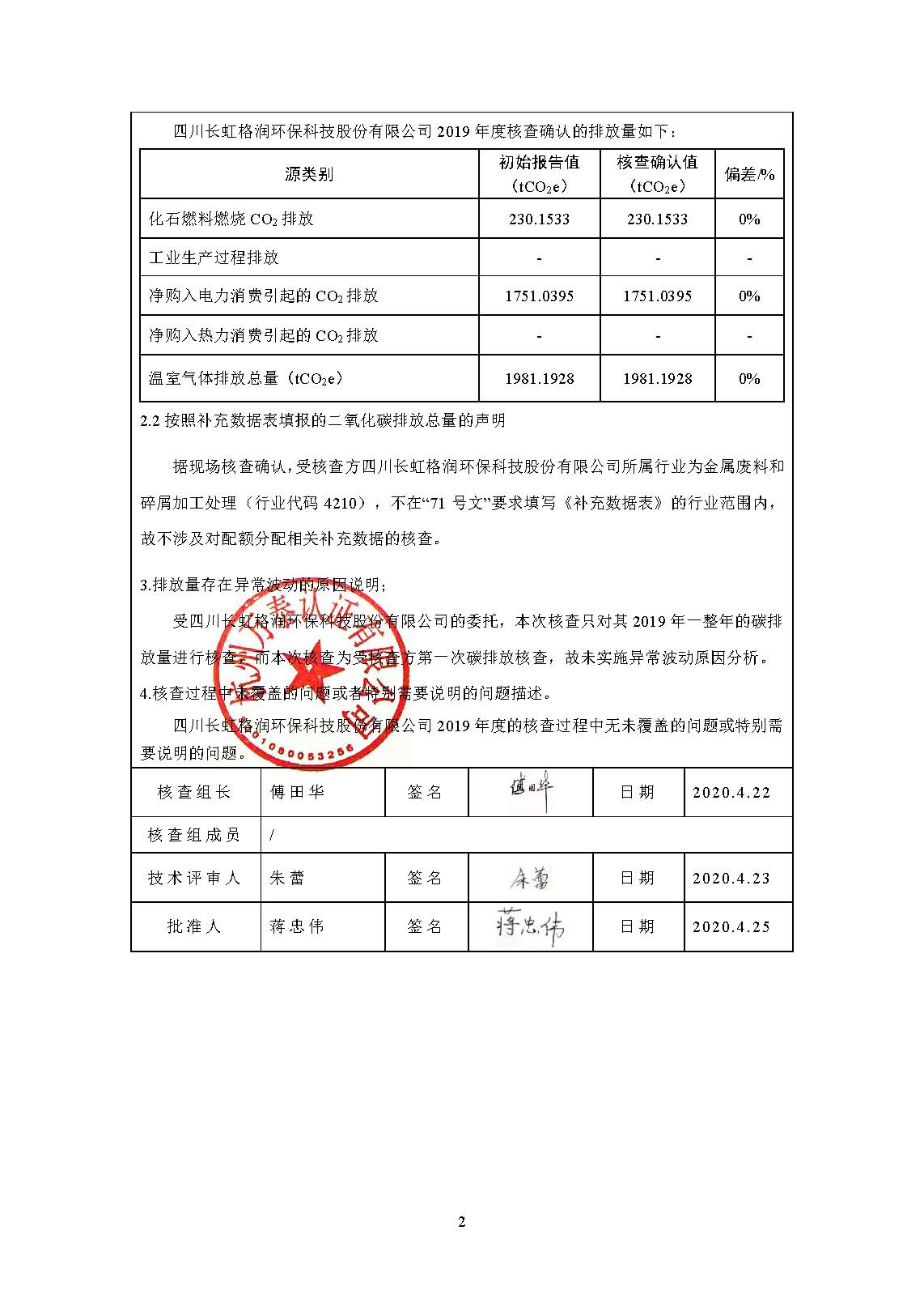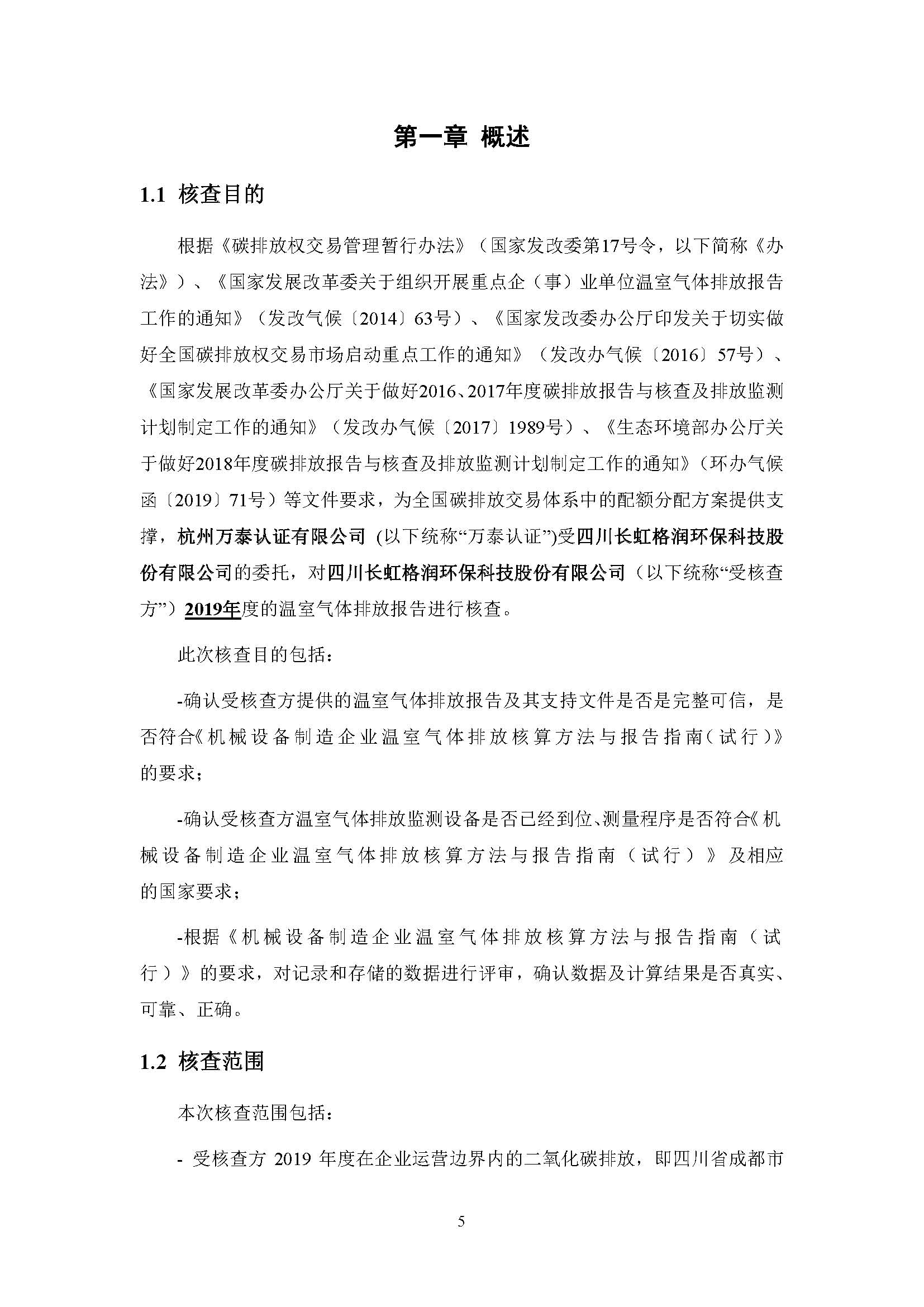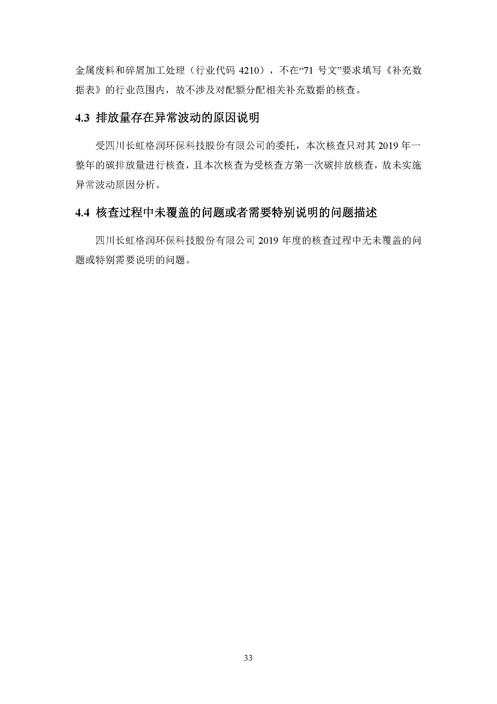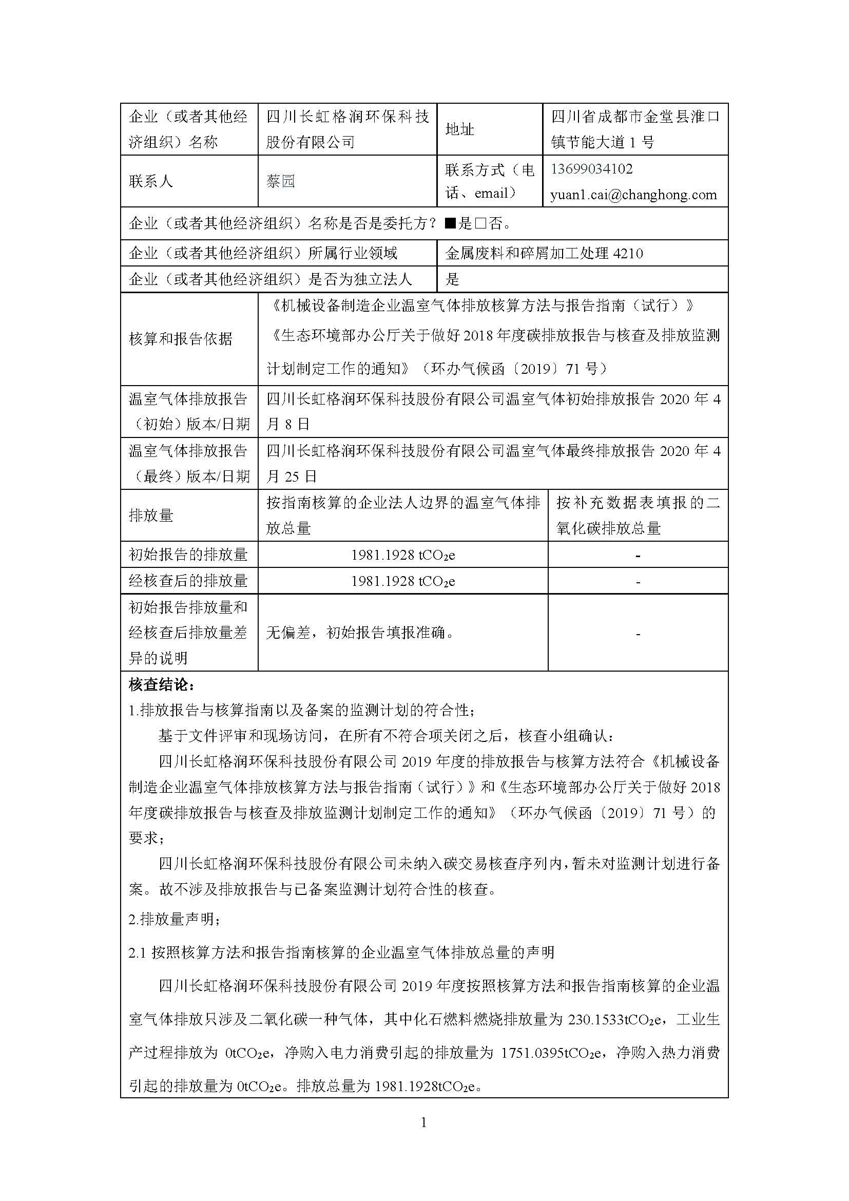Sichuan Changhong Gerun Environmental Protection Technology Co., Ltd. 2019 Greenhouse Gas Emissions Investigation Report