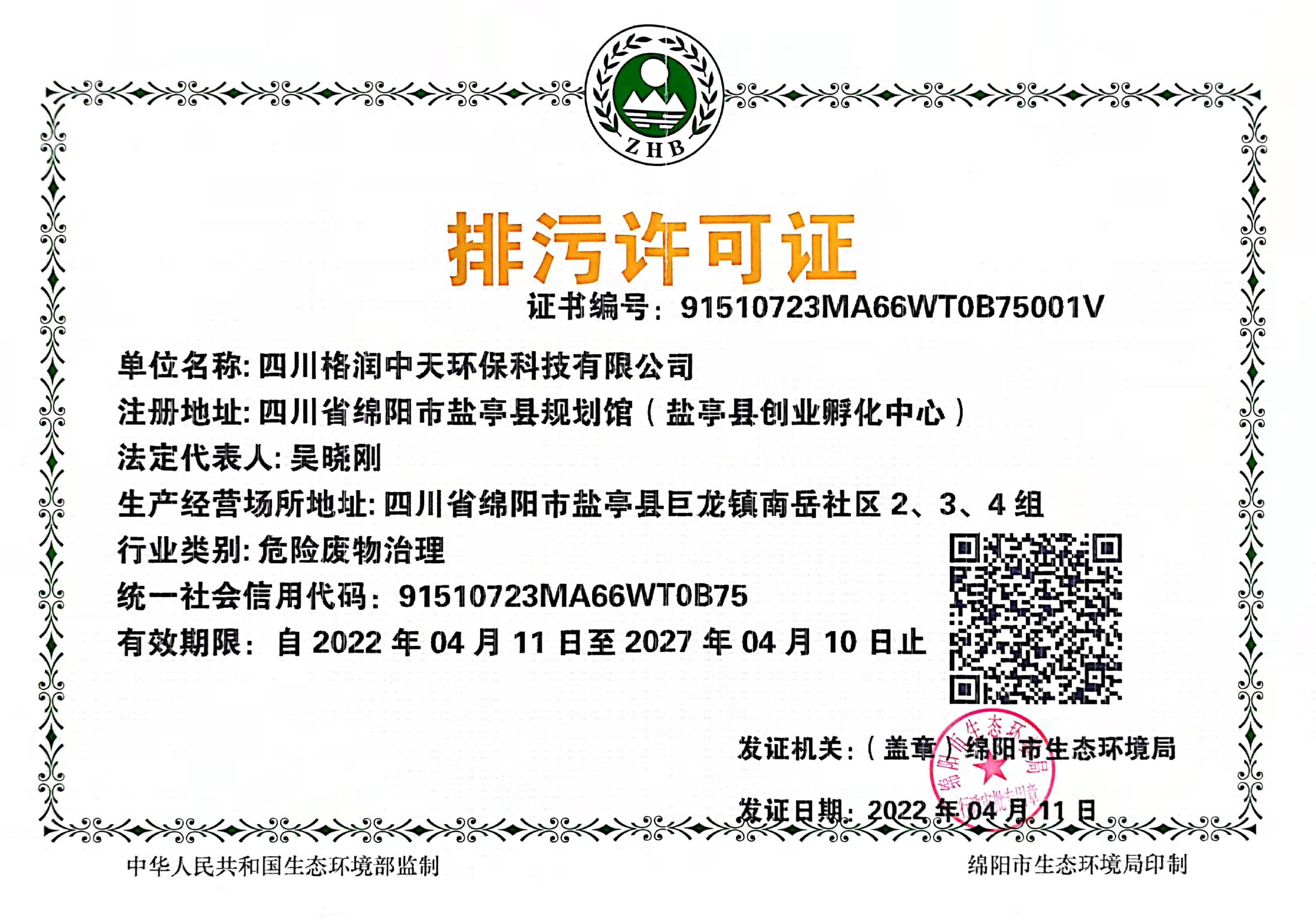 四川格潤中天環(huán)??萍加邢薰咀C件公示